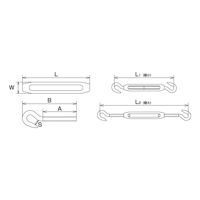 枠を回転させると、ゆるめたり、締めたりすることができます。ワイヤーロープの張り具合の調節に。
