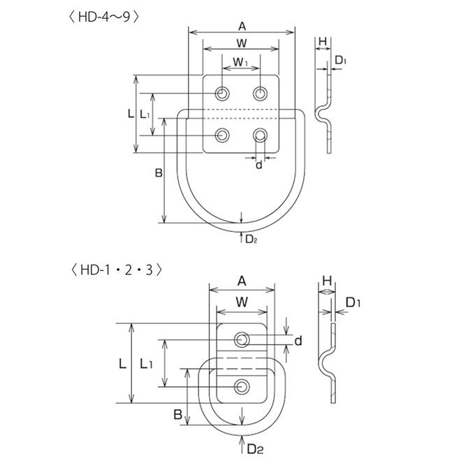 ※HD-1・HD-2・HD-3は2ヶ穴です。 ※ステンレス皿木捻子付。