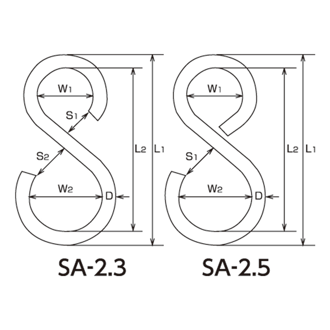細い径のSカンです。工具・器具などの一般商品の収納の吊り金具として。