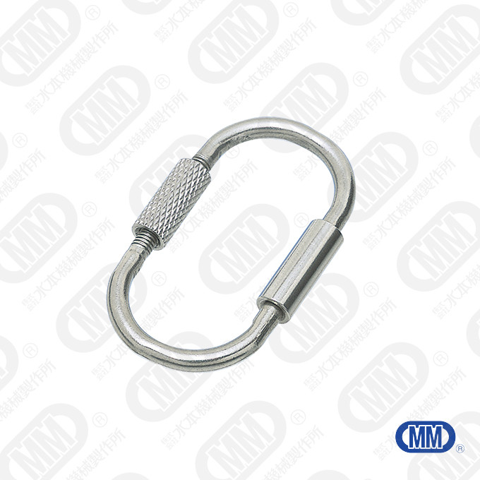 ナットを回すだけで簡単に開閉できます。口の開きが通常のリングキャッチより広く、接続作業がしやすいタイプです。太物との接続ができます。チェーン・ワイヤー・ロープなどの連結や、端末の金具のジョイントとして。
